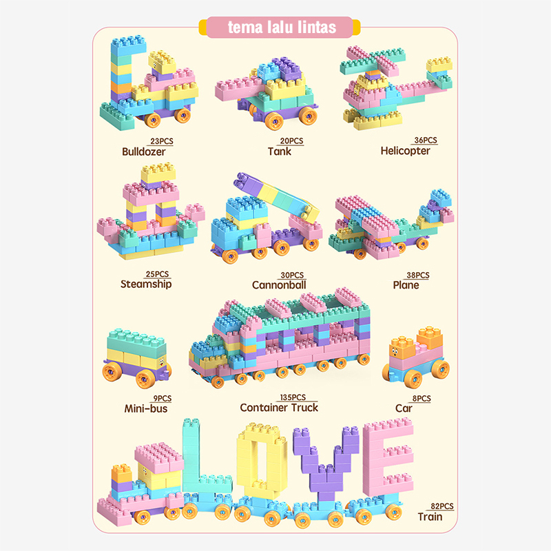 Uoptoy 560PCS Mainan Balok Anak - Blok Bangunan Besar Kompatibel Pendidikan Anak Meja Blok Besar Hadiah Mainan Mainan Ed