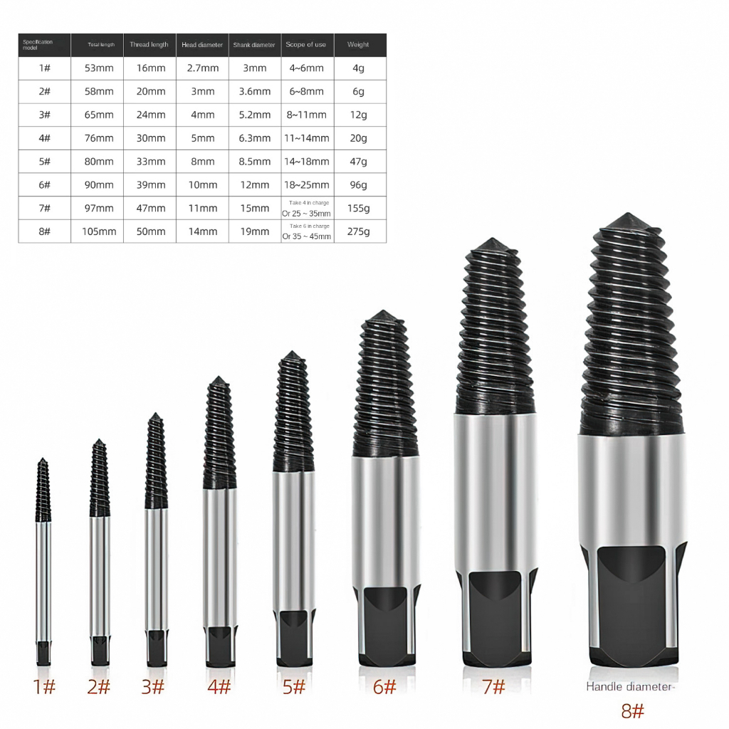 Allefix Tap Balik Pembuka Baut Screw Extractor Set 8PCS- 6646