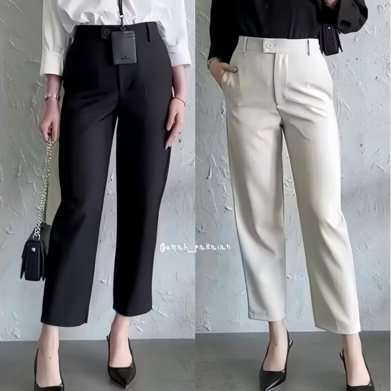 ALEXA PANTS - Celana Kerja Wanita Kantor Daily Simple Pinggang Karet Belakang