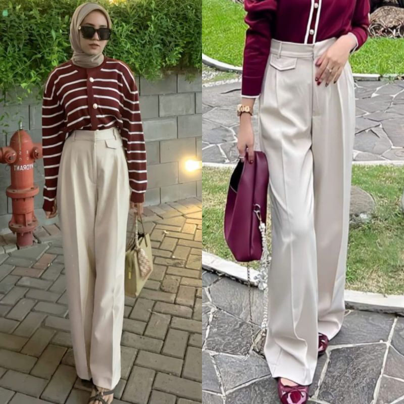 ORO PANTS SEMIWOL PREMIUM QC T0P Celana Basic Wanita Highwaist Loose Pants Trousers Kulot Anti Kusut