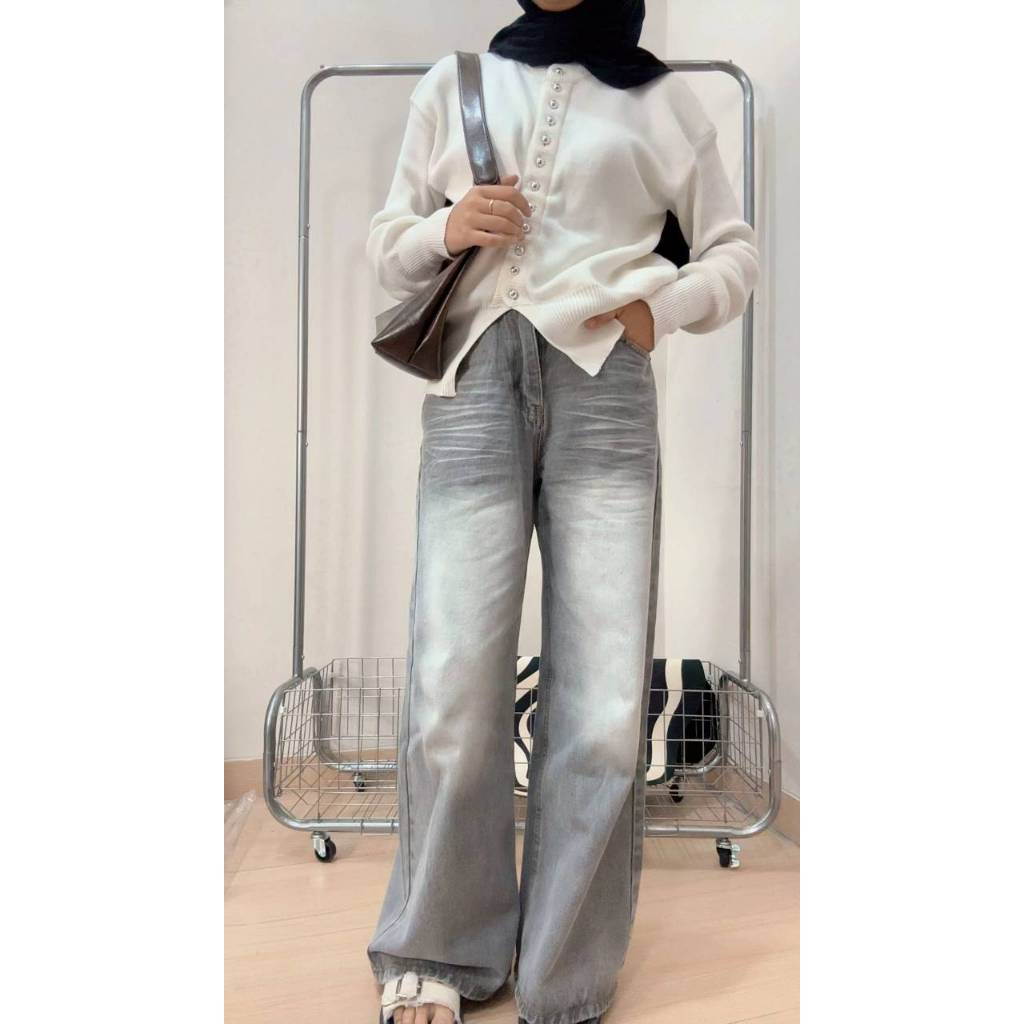 Celana Panjang Wanita Loose High Waist Jeans Premium - Korean Stayle Jeans Baggy Loose Oversize