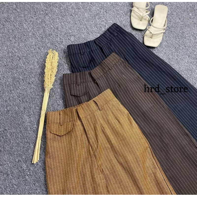 Oro Pants Stripe Bangkok High Waist Jumbo Korean Style Katun Semi Woll M L Xl XXL