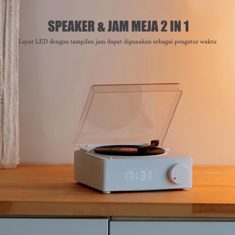 Round-X11 Atomic Speaker Bluetooth Jam Alarm Speaker Retro bentuk Vinyl Record Player