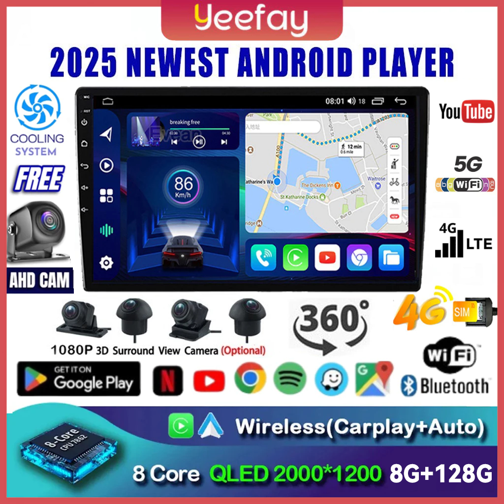 Support Kamera 360 8G+128G Android 13 Double Din 8-Core CPU Head Unit 7/9/10 Inch IPS Screen Car Navigasi Untuk TOYOTA D