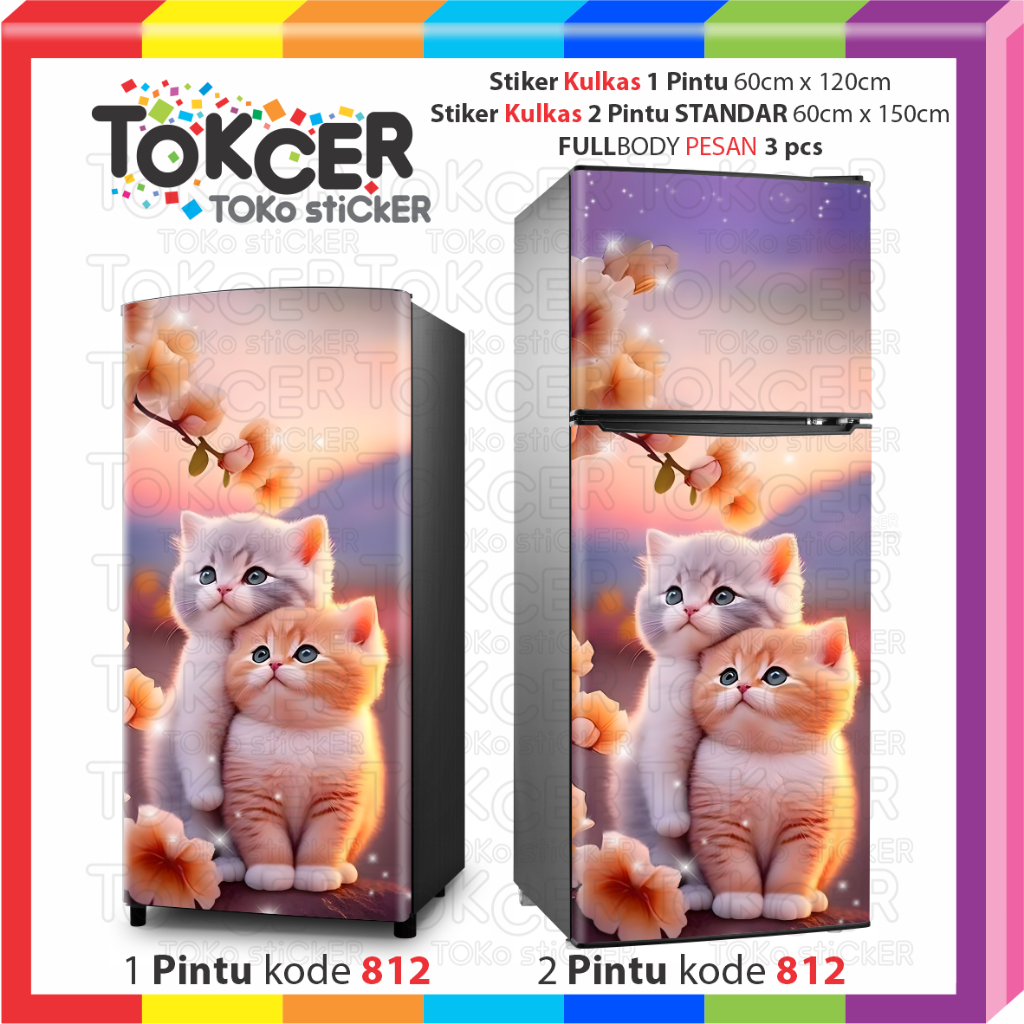 STIKER Kulkas LAMINATING GLOSSY Anti LUNTUR uk 1 Pintu atau 2 Pintu Motif KUCING