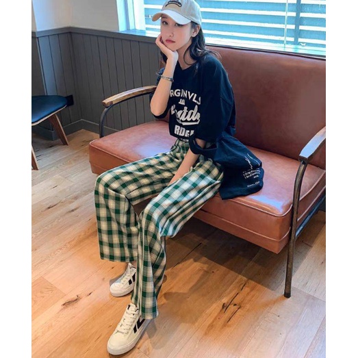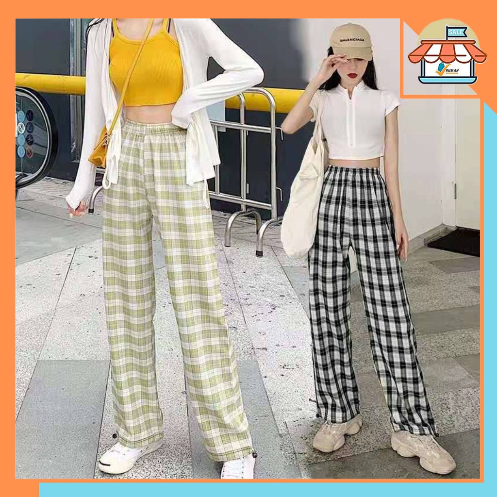 RSB CPG280 Celana Panjang Wanita Motif Kotak - kotak Casual Tartan Plaid Long Pants Korean Fashion