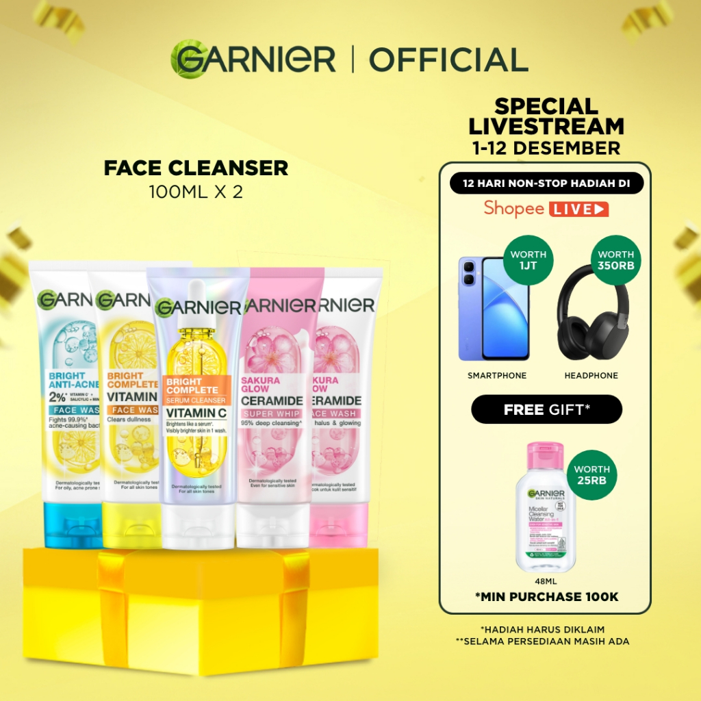 [PAKET HEMAT ISI 2] GARNIER Facial Wash ALL VARIANT 100ML Vitamin C Ceramide Ani Acne Skincare Pembersih Wajah sabun cuc