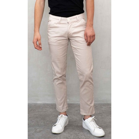 Celana Chino Panjang Pria Slimfit Kerjaharian Santai Casual Formal Hitam Abu Cream Mocca Size 27-38