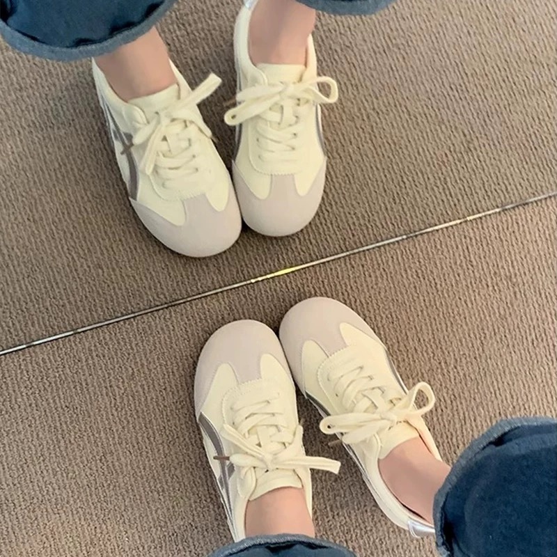 SHOEVO Sepatu Kasual Kulit Datar Dengan Sol Lembut Anti Selip Putih Serbaguna ST096