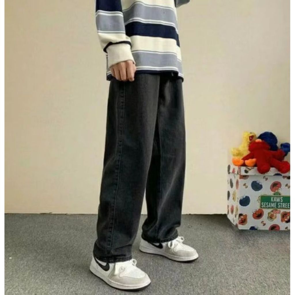 Celana Jeans Wisker Panjang Celana Skena Celana Gombrong Unisex