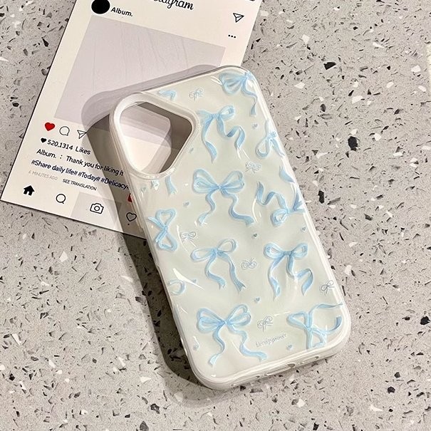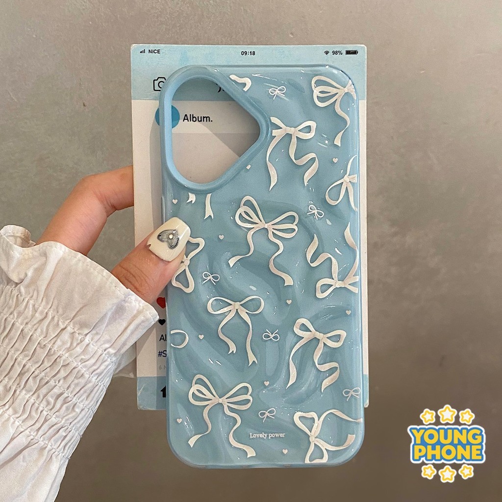 Softcase Untuk iPhone 13 16 11 12 14 15 PRO MAX PLUS Case White Bow Tekstur Mode Phone Case