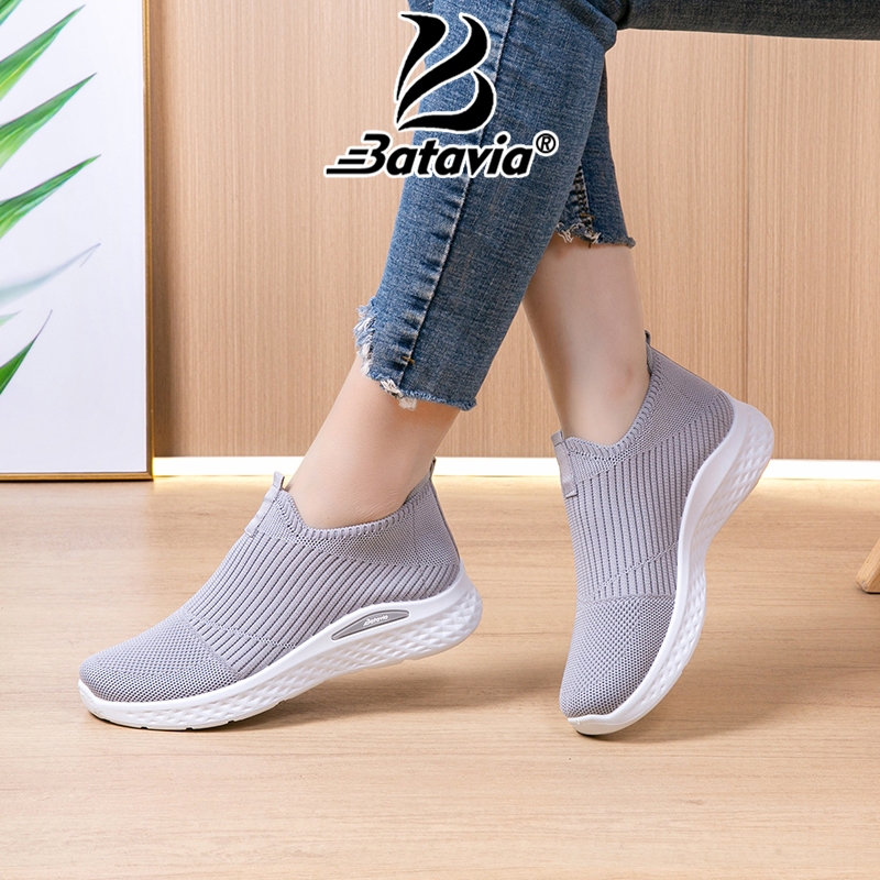 Batavia GROSIR sepatu wanita rajut sepatu tanpa tali hitam Sepatu Wanita Sport Women Sneakers N60
