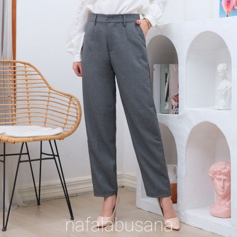 Celana Kerja Wanita Highwaist Pinggang Karet Belakang Bahan Dasar Kain Kantor Formal