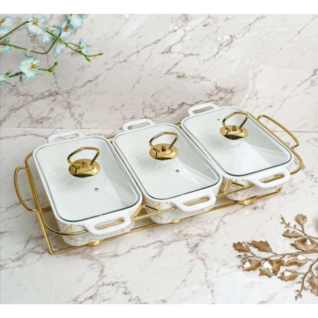Prasmanan keramik set isi 3 gold mewah marble BATAM