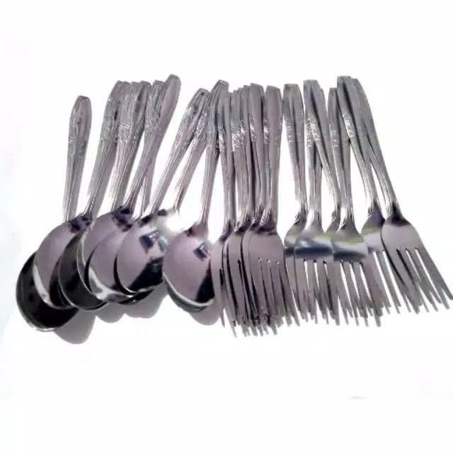 MOS [12 PCS] SENDOK MAKAN STAINLESS SPOON FORK / GARPU ANTI KARAT ISI 12 PCS 1 LUSIN SENDOK BUNGA SENDOK BATIK MURAH MER