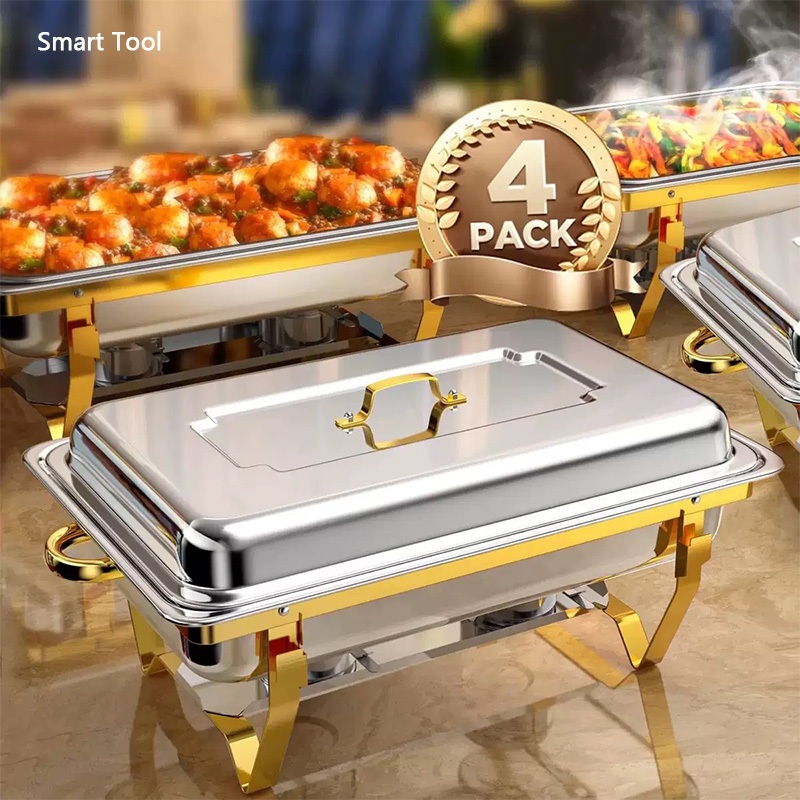 Smart Tool Promo Tempat Makan Set Prasmanan Kotak Jumbo Double Loyang Pemanas Isi 4 Pcs / Chafing Dish Set 4 Pack Prasmanan Catering Stainless Steel