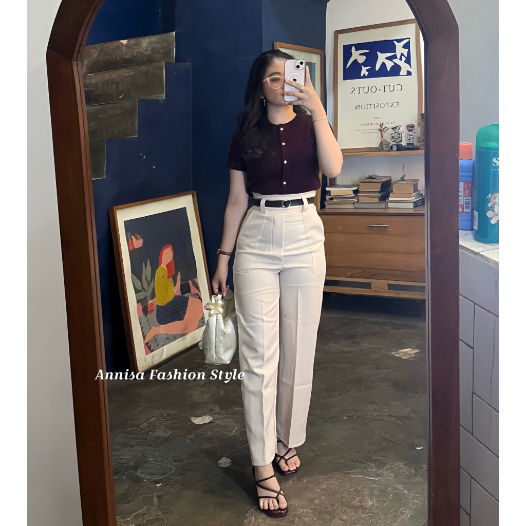 Diora Highwaist Pants / Celana Kulot Loose Pants Wanita / Kulot Straight Cut Pants Wanita Korean Style Terbaru