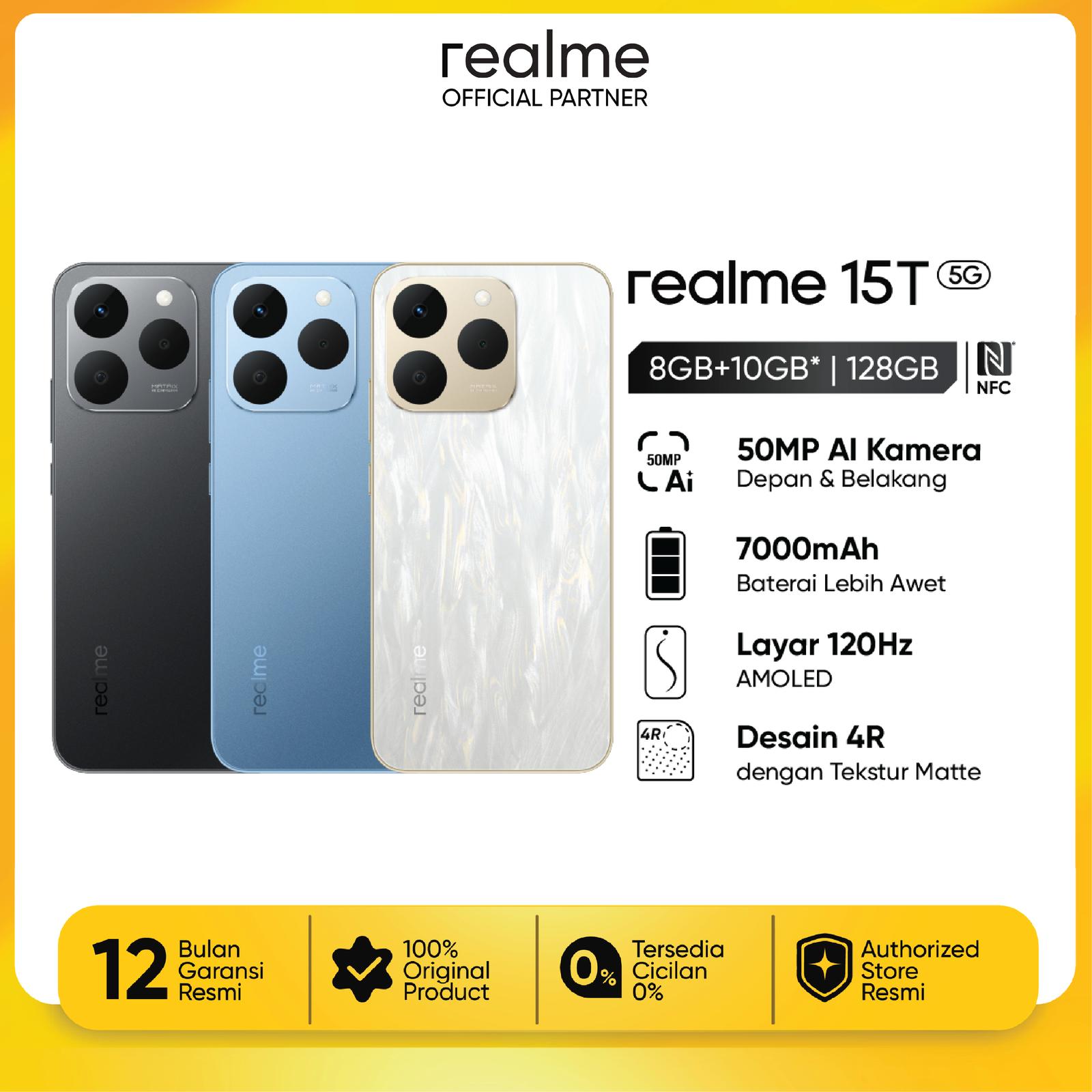 realme 15T 8GB/128GB - 8/256GB Garansi Resmi | Dimensity 6400 Max, AMOLED, Camera 50MP, 7000mAh | REALME OFFICIAL