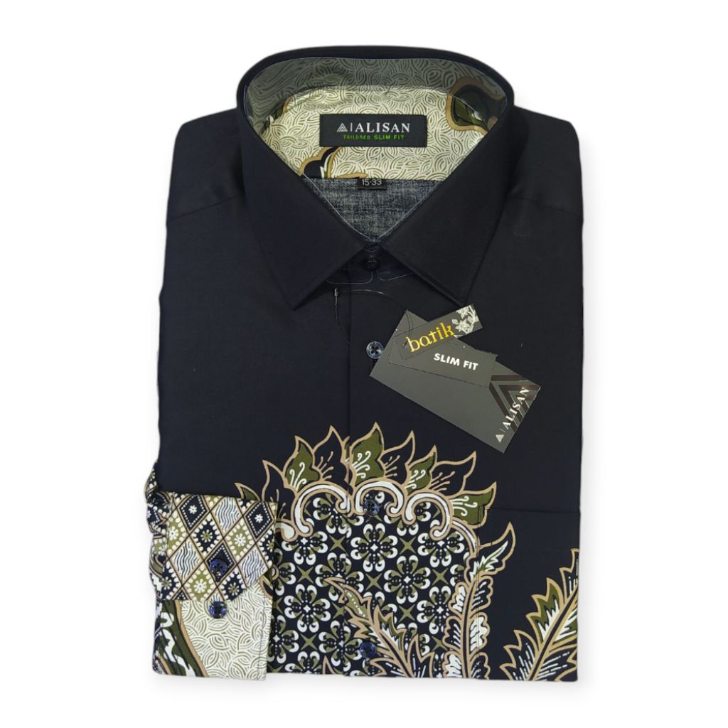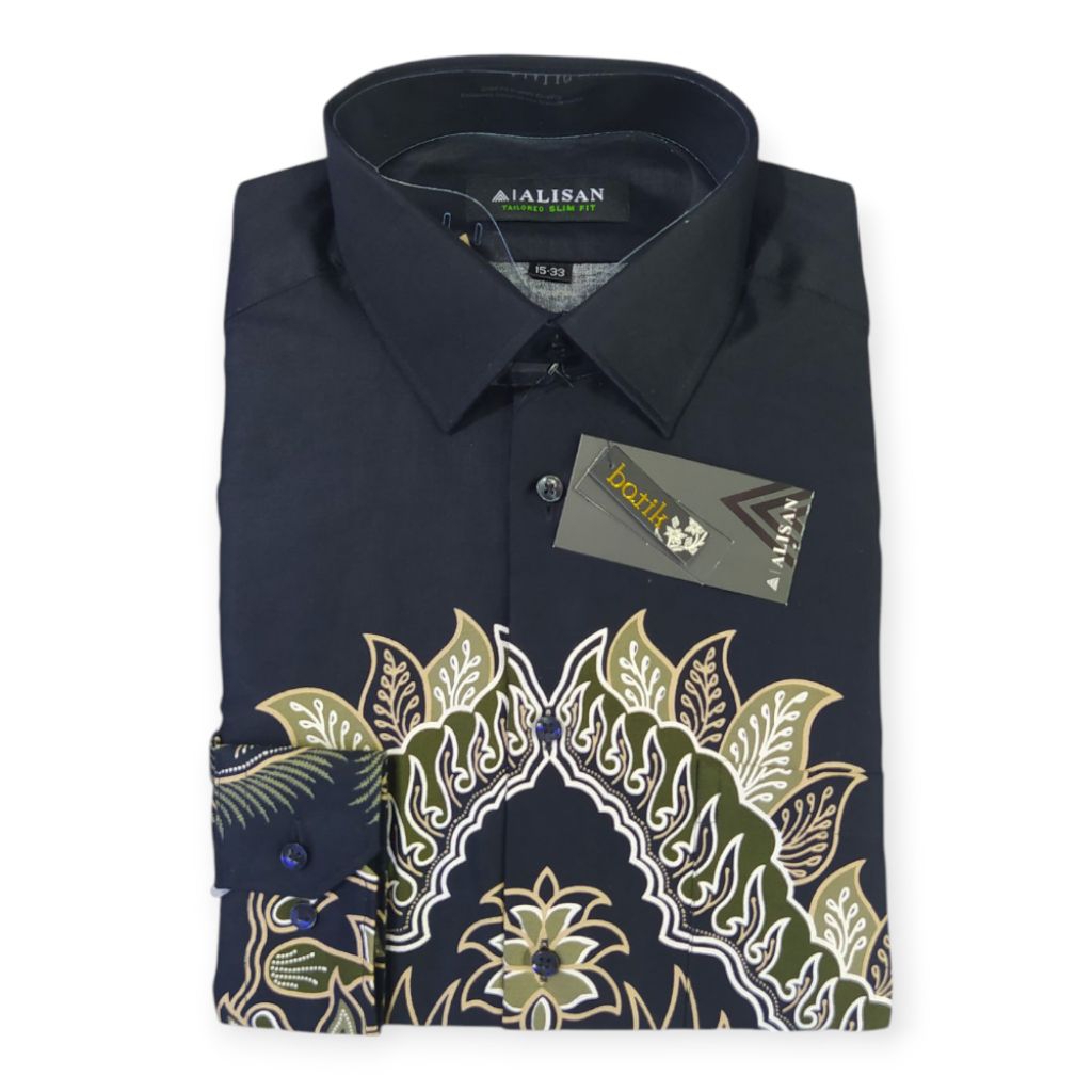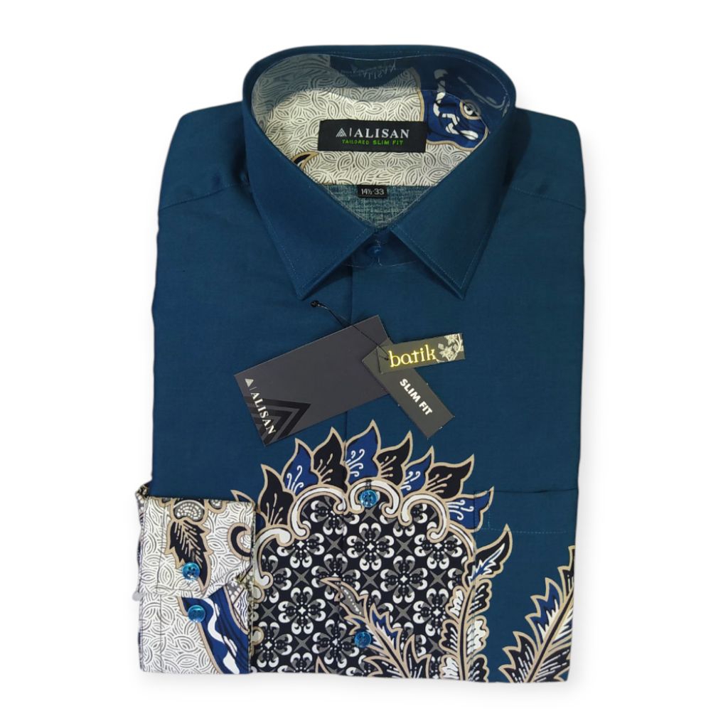 Kemeja Alisan Batik Lengan Panjang Slimfit Terbaru Size 14½-33(S) - 16-34(Xl) Panjang Pria Dewasa