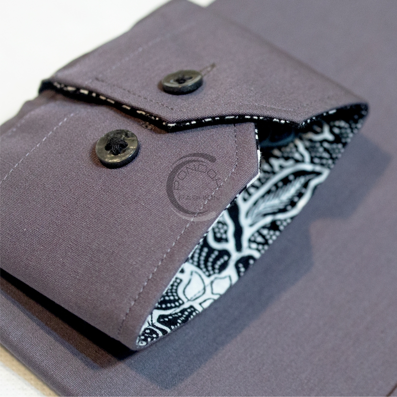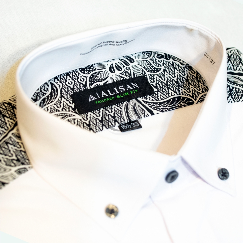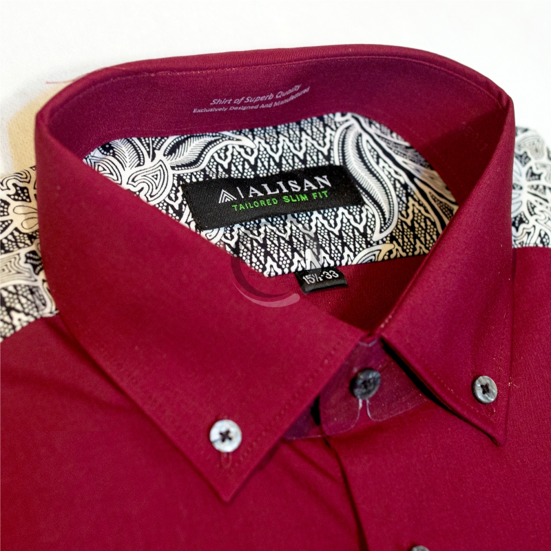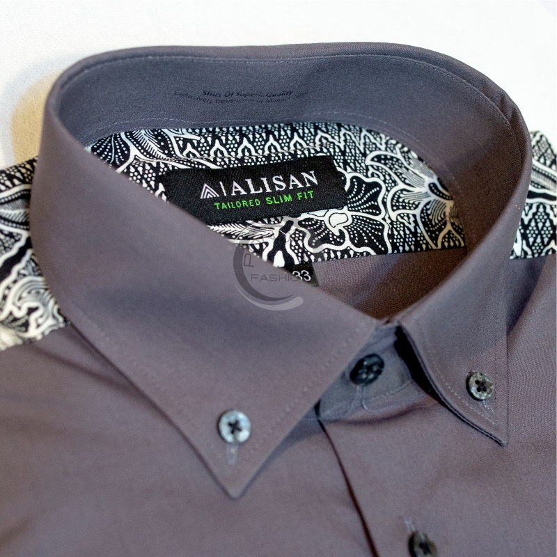 Kemeja Alisan Pria Polos Kombinasi Pundak Batik Lengan Panjang Ori 100 PERSEN