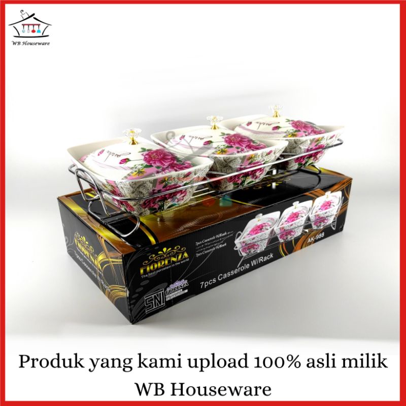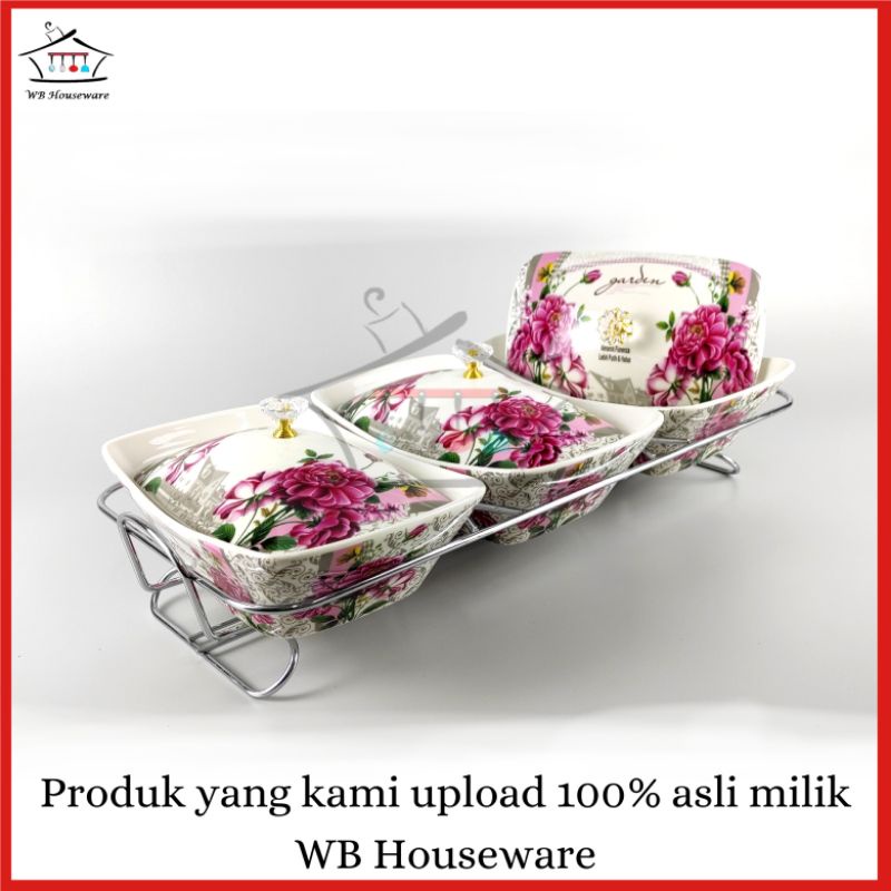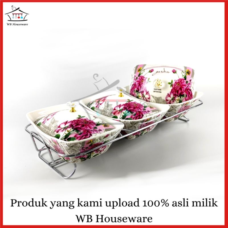 prasmanan set keramik isi 3 Rose fiorenza AK-988 / Basi segi motif bunga