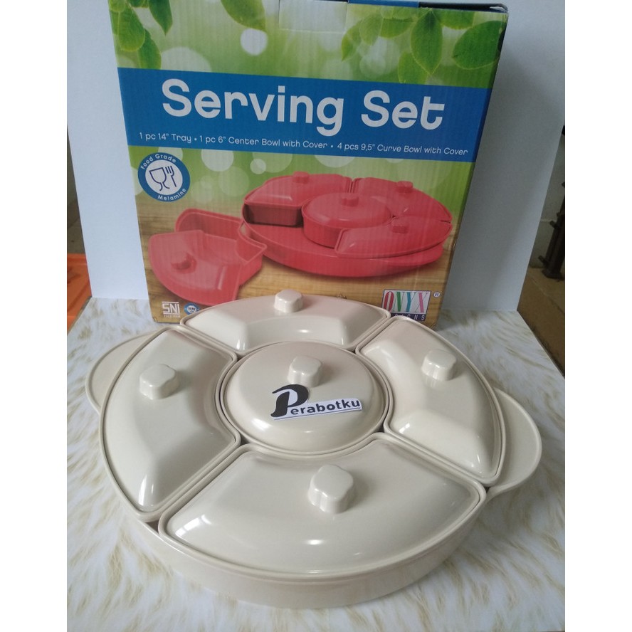 ONYX PSB01 Prasmanan 14" Party Set Melamin saji tutup Bulat 35 cm CREAM , PUTIH , ABU-ABU
