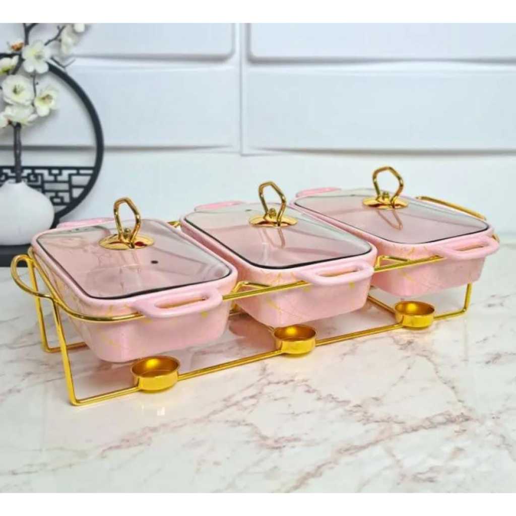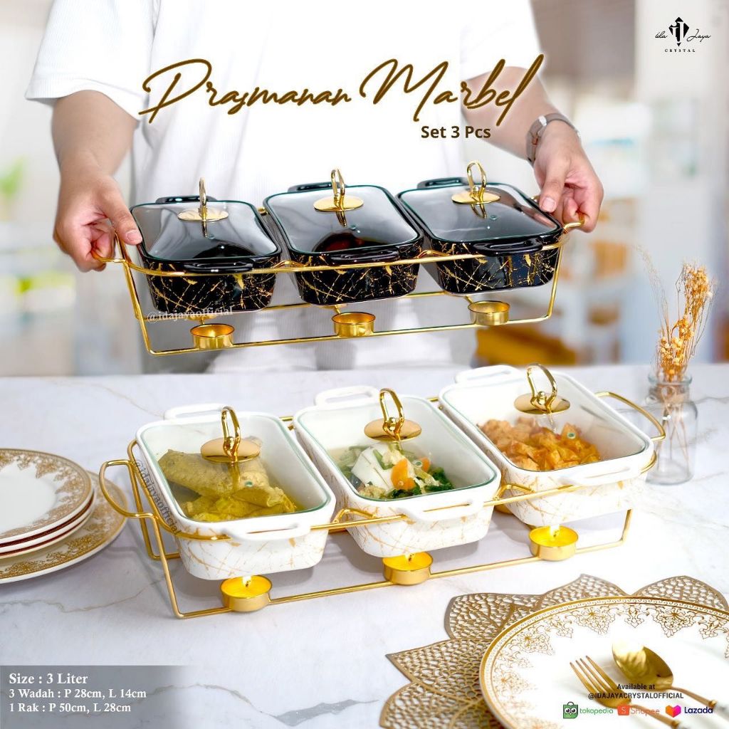 Prasmanan Gandeng Keramik Marble Set 3 Pcs Wadah Saji Tempat Penyimpanan Makanan BATAM