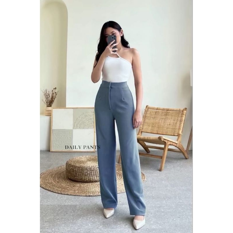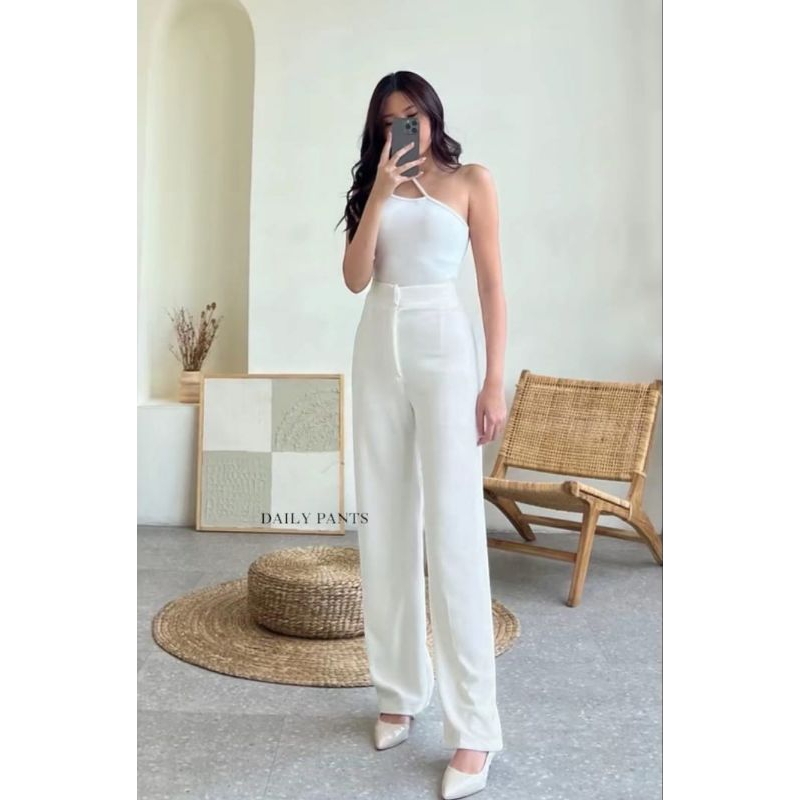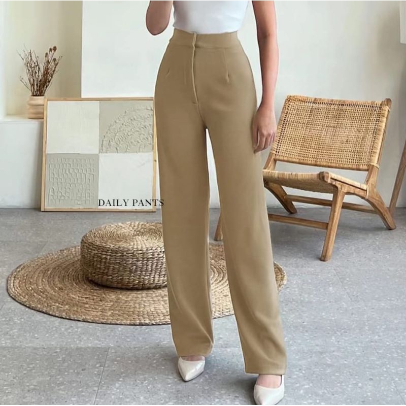 Cozie Pants Rib Knit Premium Highwaist Kulot Loose Pants Celana Wanita Anti Kusut