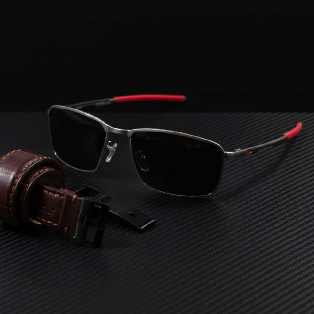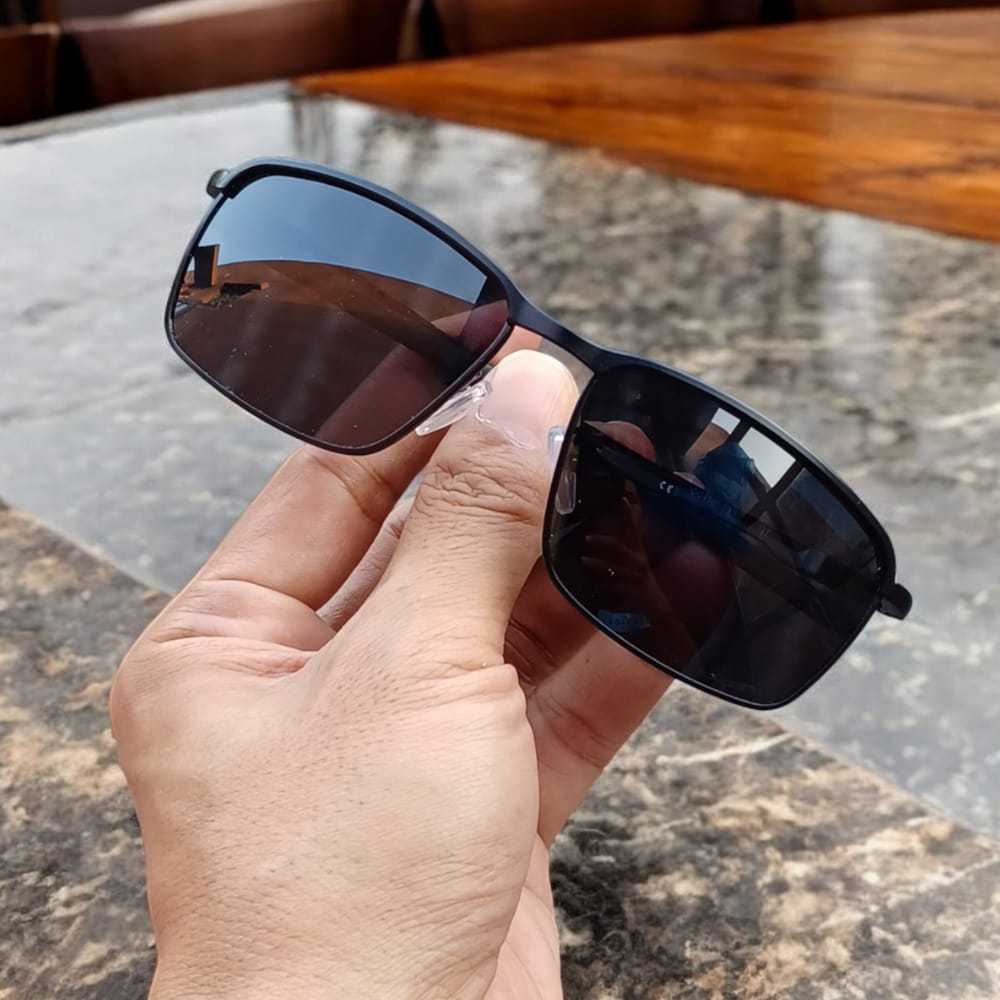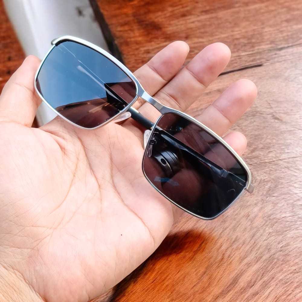 CAPONI Kacamata minus Pria Lensa Hitam Permanen Frame Titanium Tangkai Pegas Anti Silau Outdoor