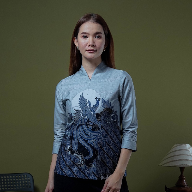Hadinata Batik Wanita Superfine Blouse Divakar Grey
