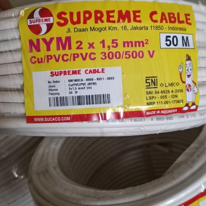 Kabel Listrik Supreme 2X1.5 2X1,5 Nym / 1.5 Mm Isi 2 Kawat Tembaga Putih 50M 50 Meter