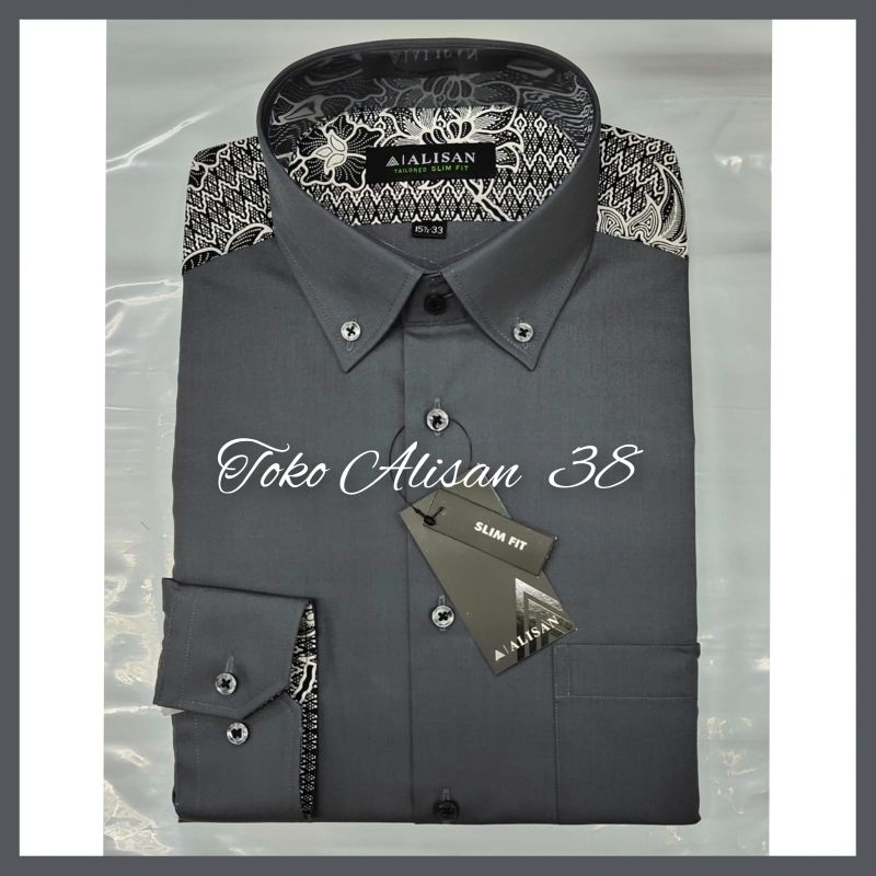 Kemeja Alisan Polos Slim Fit Model Pundak Batik Lengan Panjang (100 PERSEN Ori)