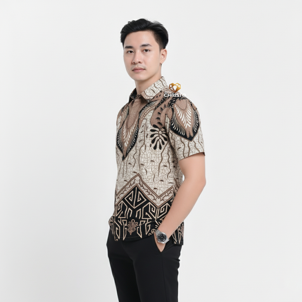 Kemeja Batik Pria Baju Lengan Pendek Slimfit Lapis Furing Batik Christo Pd0176 Bahan Katun Premium Elegan Motif Formal W