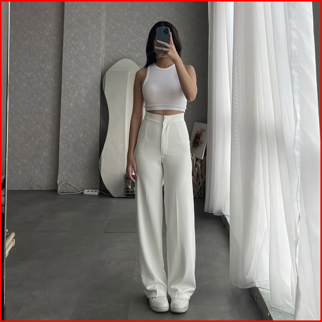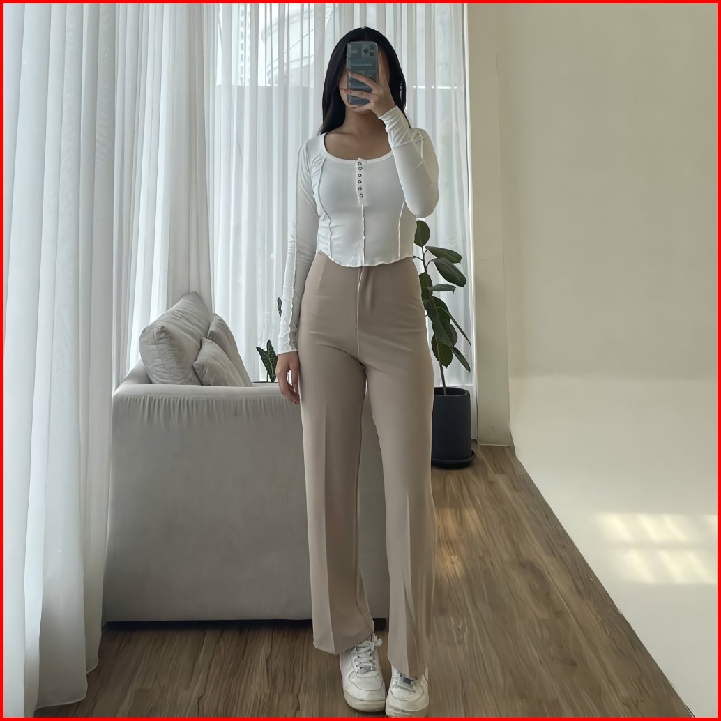 Loose Pants Hightwaist Scuba Premium - Celana Panjang Kulot Anti Kusut