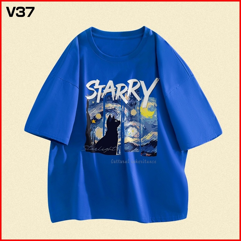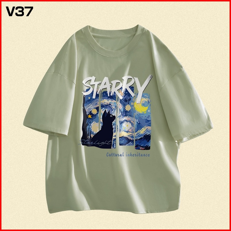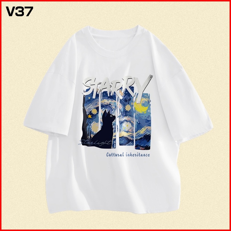 V37 Cotton Short Sleeved T-shirt Men S Trendy Oil Painting Loose Top Casual Top
