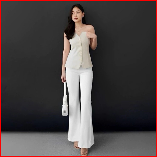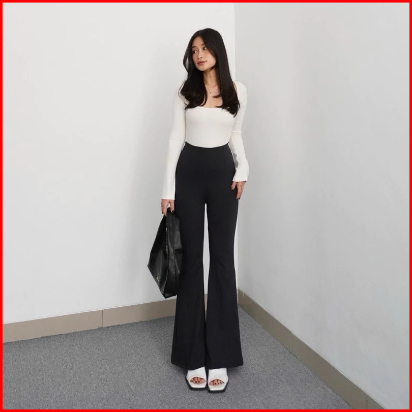 Celana Fit And Flare Pants Bahan Scuba Pinggang Highwaist Bahan Stretch Melar Elastis Kulot Cutbray