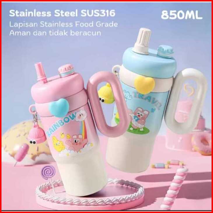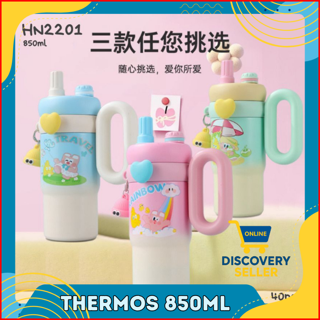 Discovery Thermos 850ml Lucu Stainless Aesthetic Anak Sedotan Botol Minum Tahan Dingin Anti Bocor
