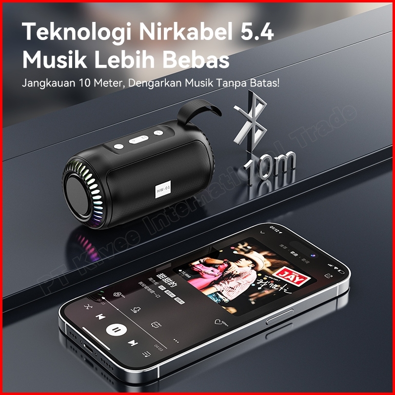 Kivee Speaker Bluetooth 5.4 Portable Kv-mw79 Black 800ma With Full Bass Rgb For Tf Cards Card Reader