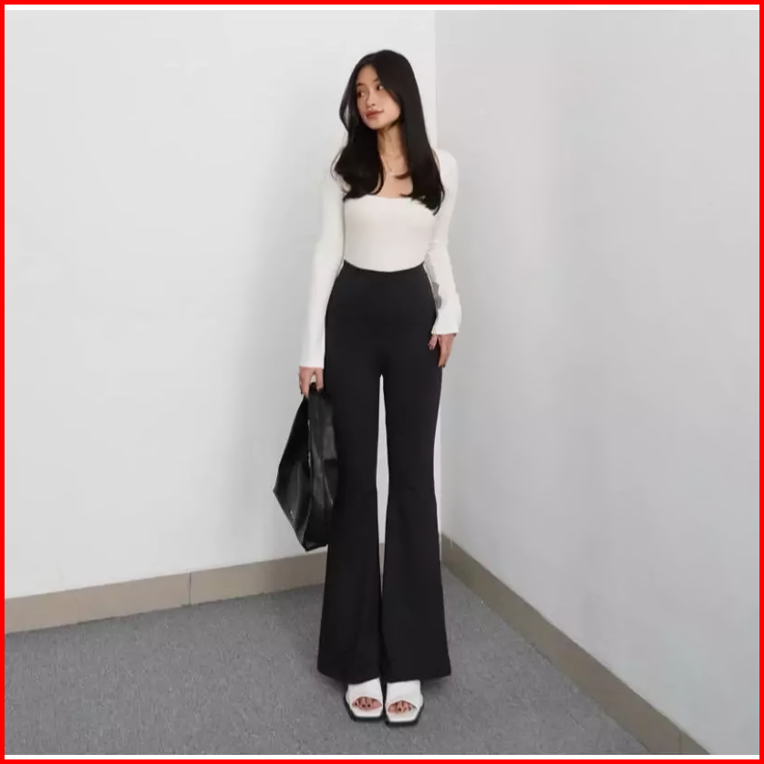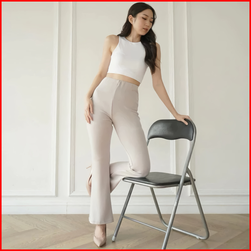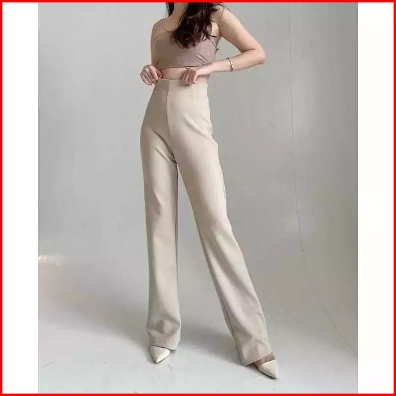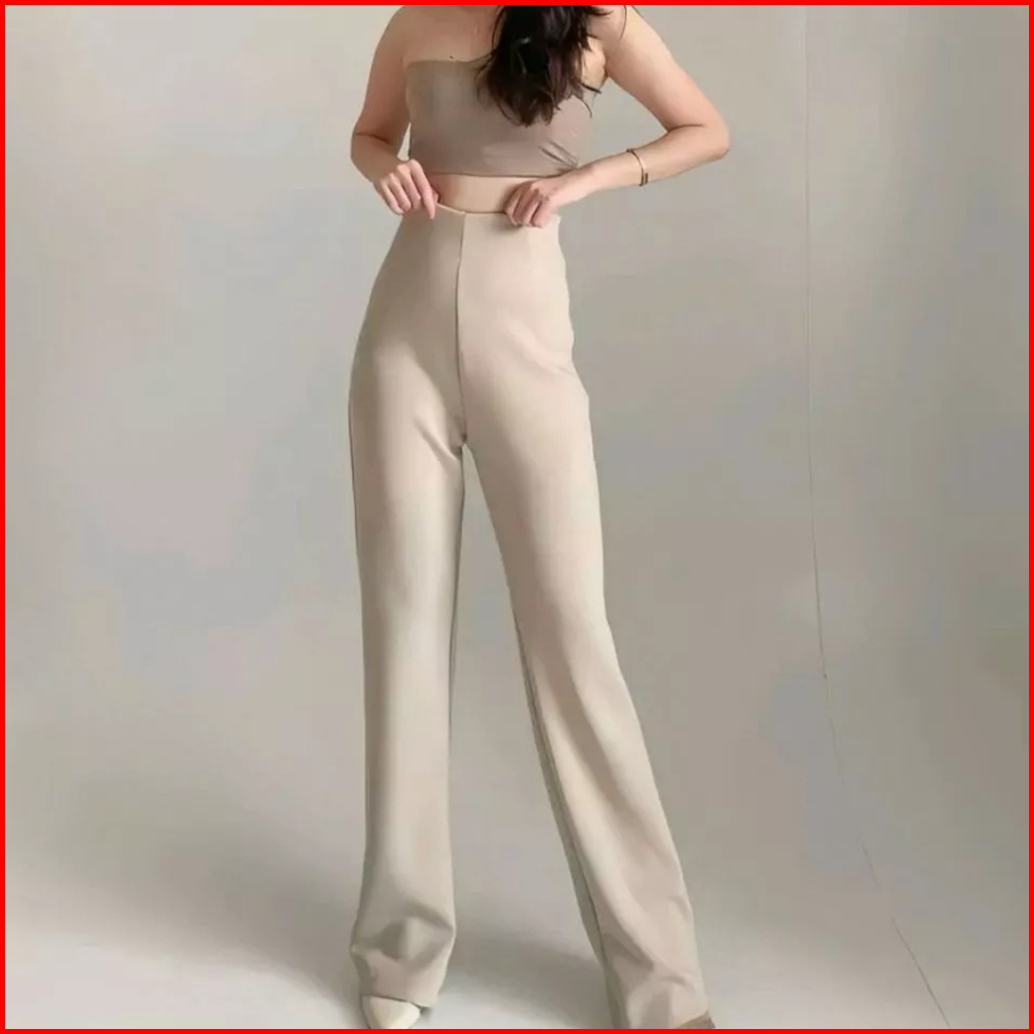 Celana Fit Flare Pants Cutbray Scuba Pinggang Highwaist Bahan Stretch Melar Elastis Silmy
