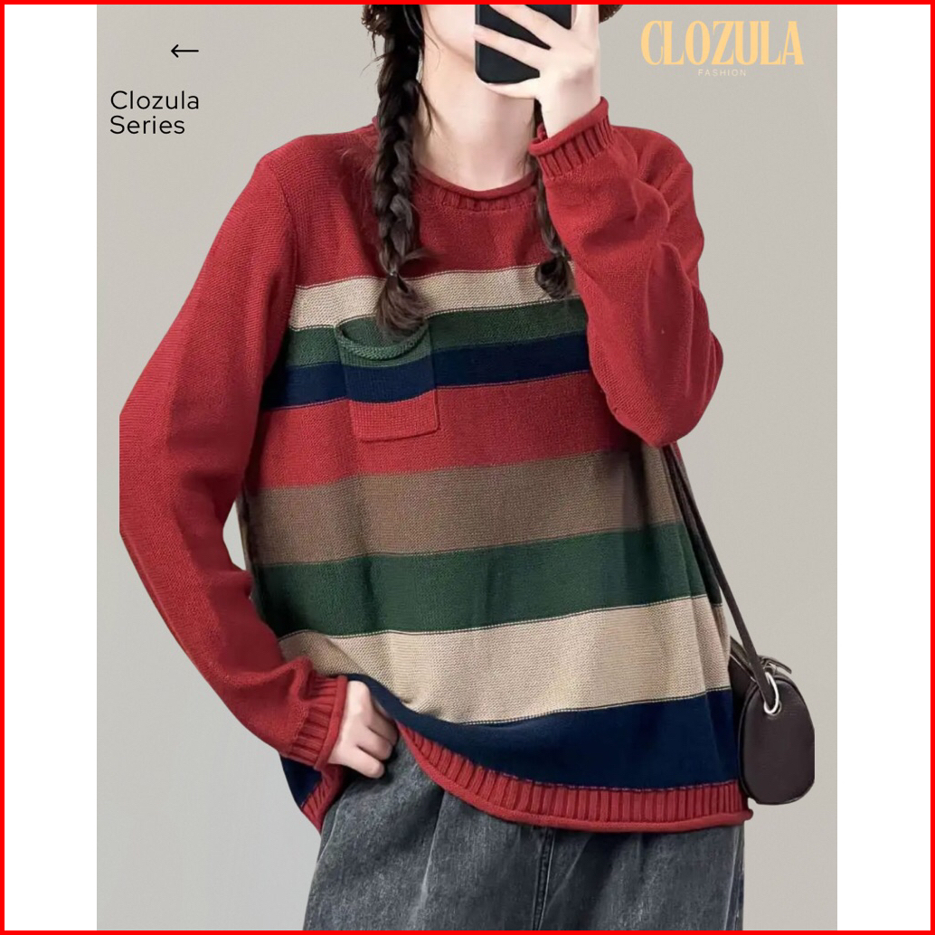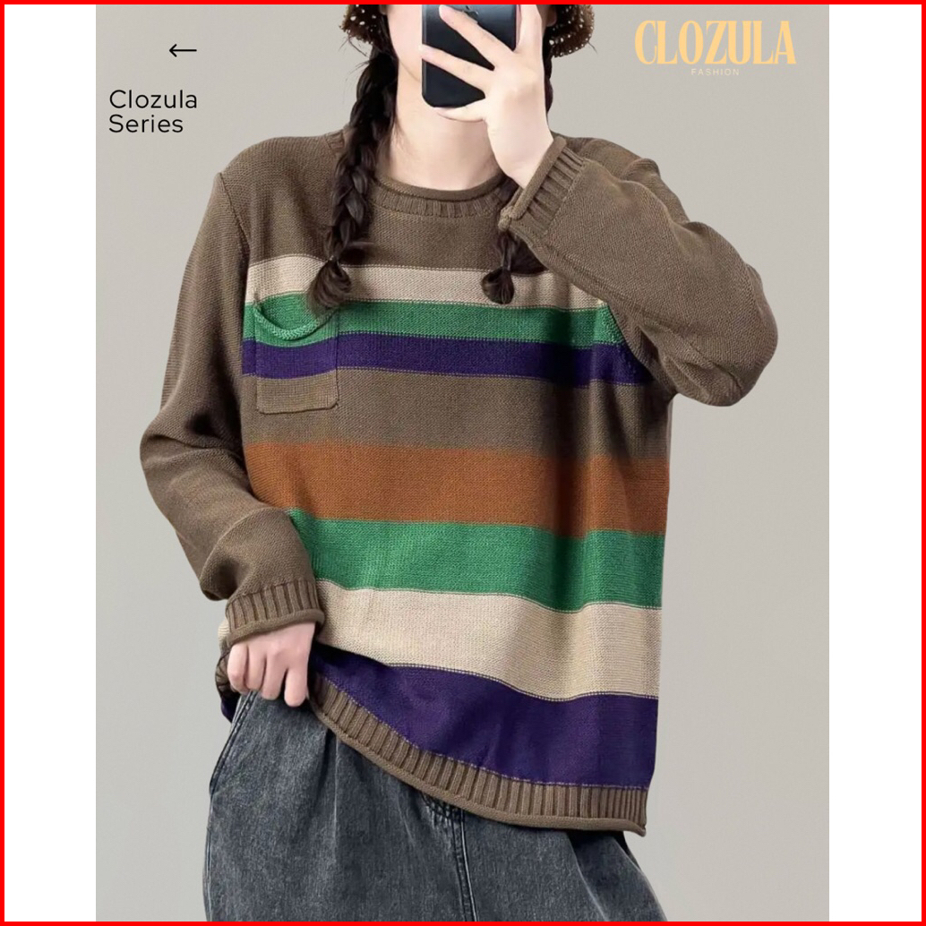 Sweater Stripe Korean Cewek Casual Wanita Remaja Dewasa Outer - Baju Rajut Untuk Wanita