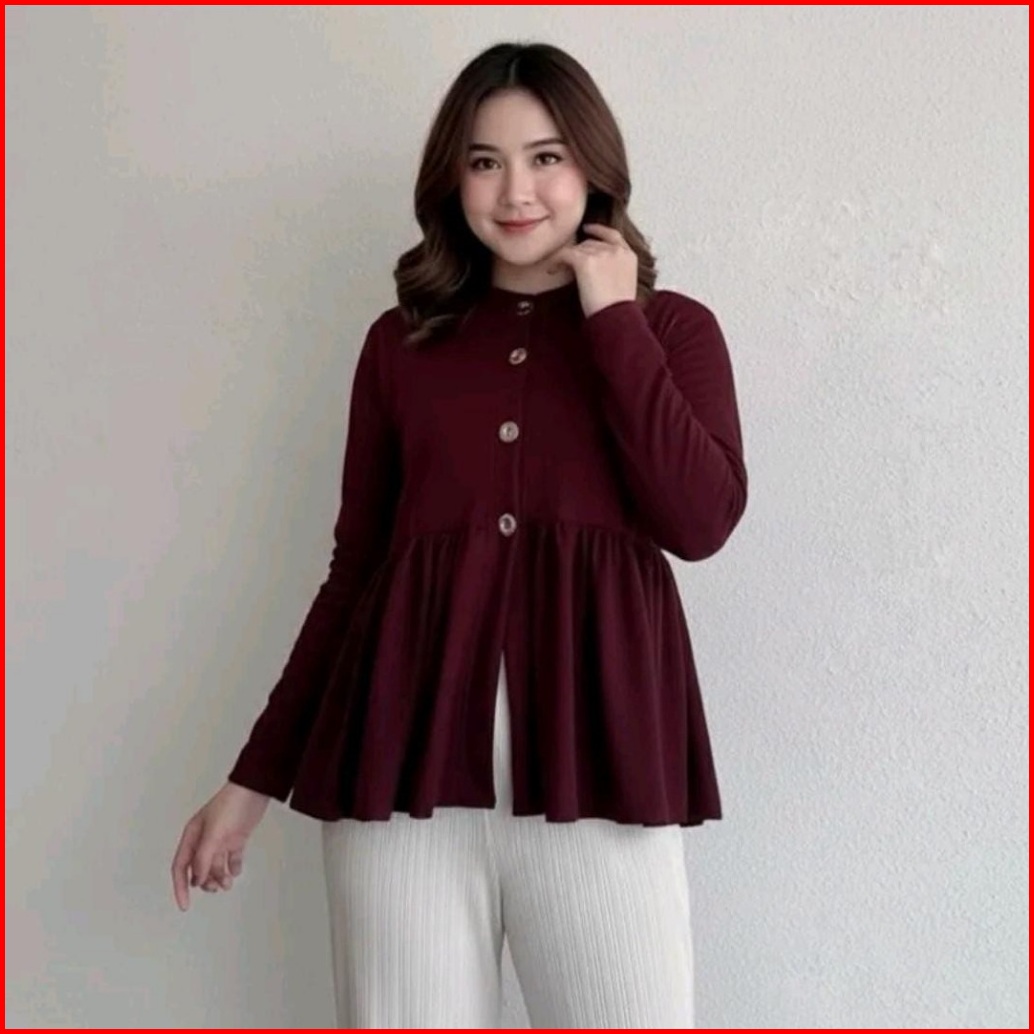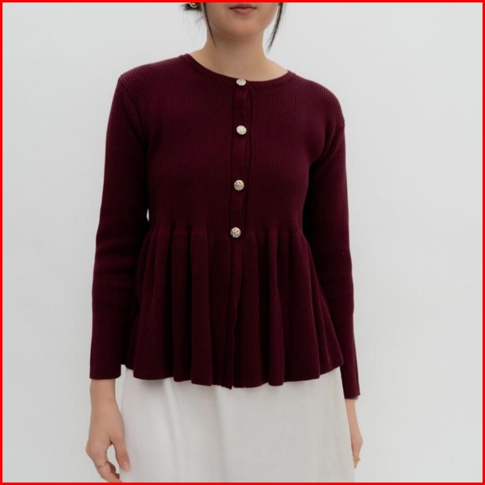 Cardigan Rajut Knit Peplum Wanita Lengan Panjang Kardigan Ruffle Korea Style Terbaru