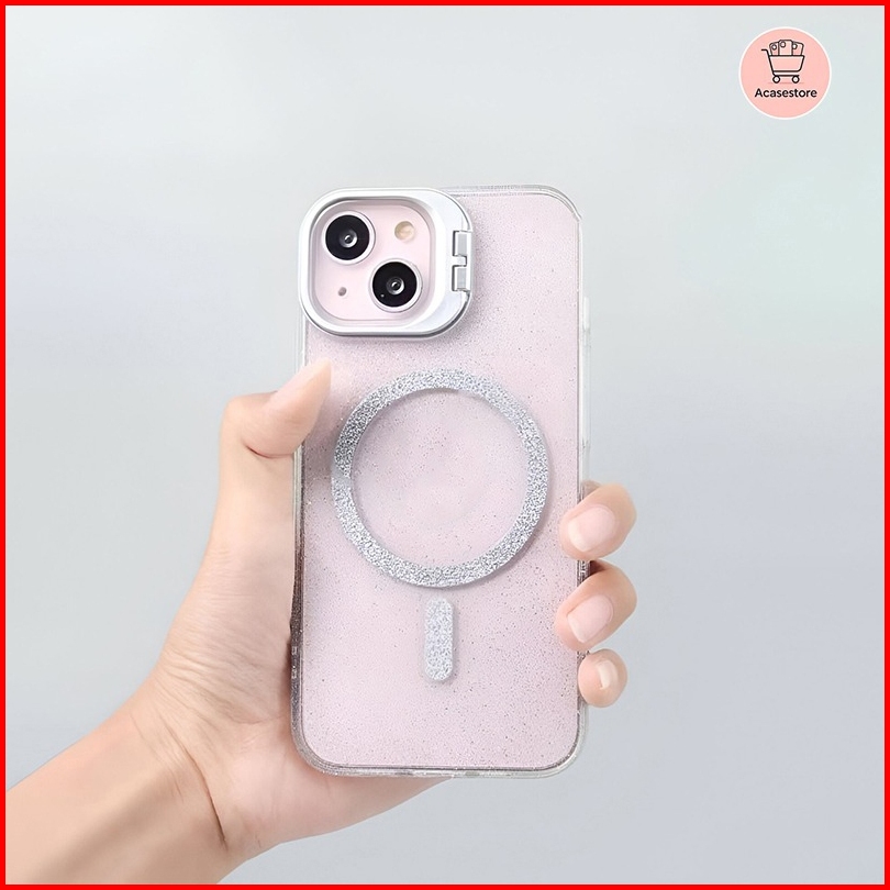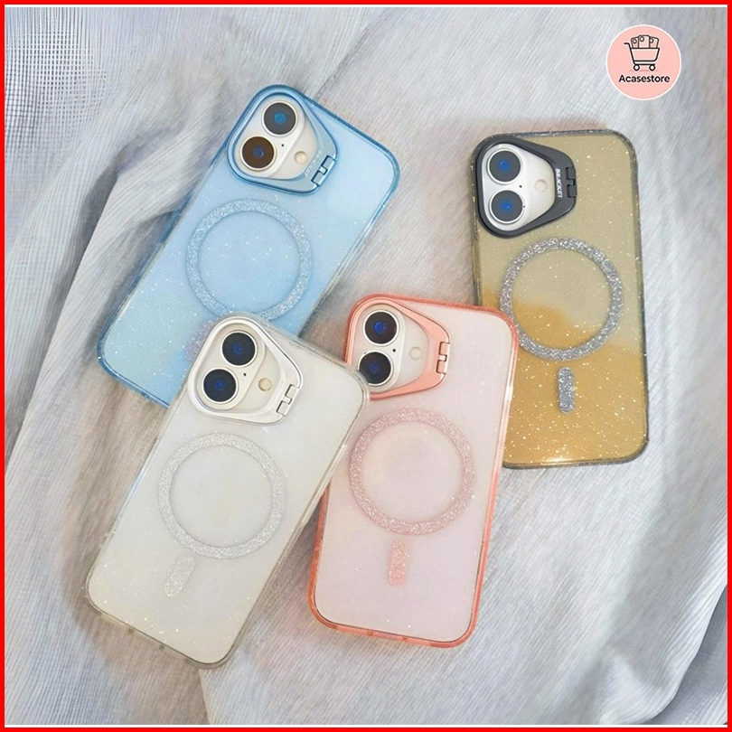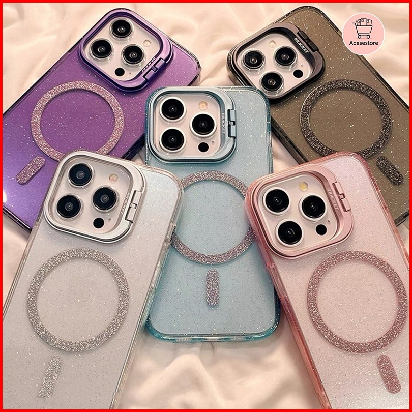 New Glitter Magnetic Lens Stand Holder Case - Hardcase Casing Hp Compatible For Iphone 11 12 13 14 15 16 16e 17 17air Pl