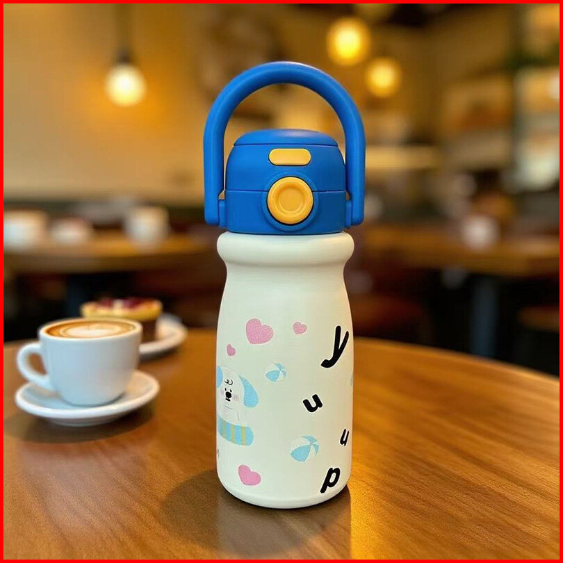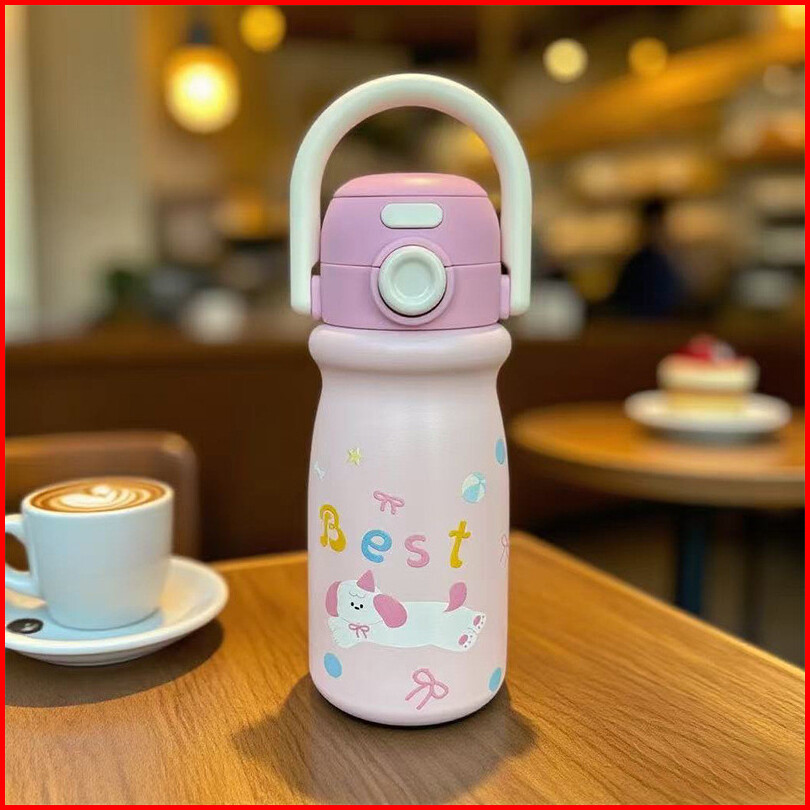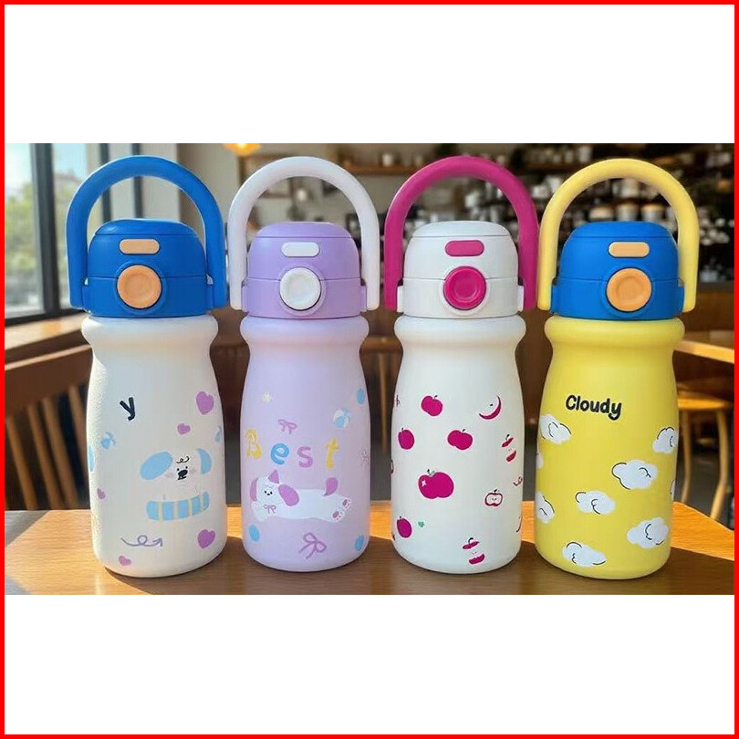 Bisa Ukir Nama - Tumbler Anak 316 Stainless Dua Mode Minum Sedotan 500ml Bergagang Lucu