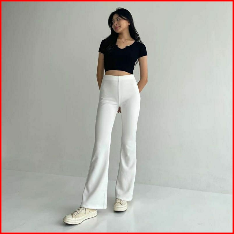Flare Pants - Highwaist Celana Cutbray Scuba Wanita