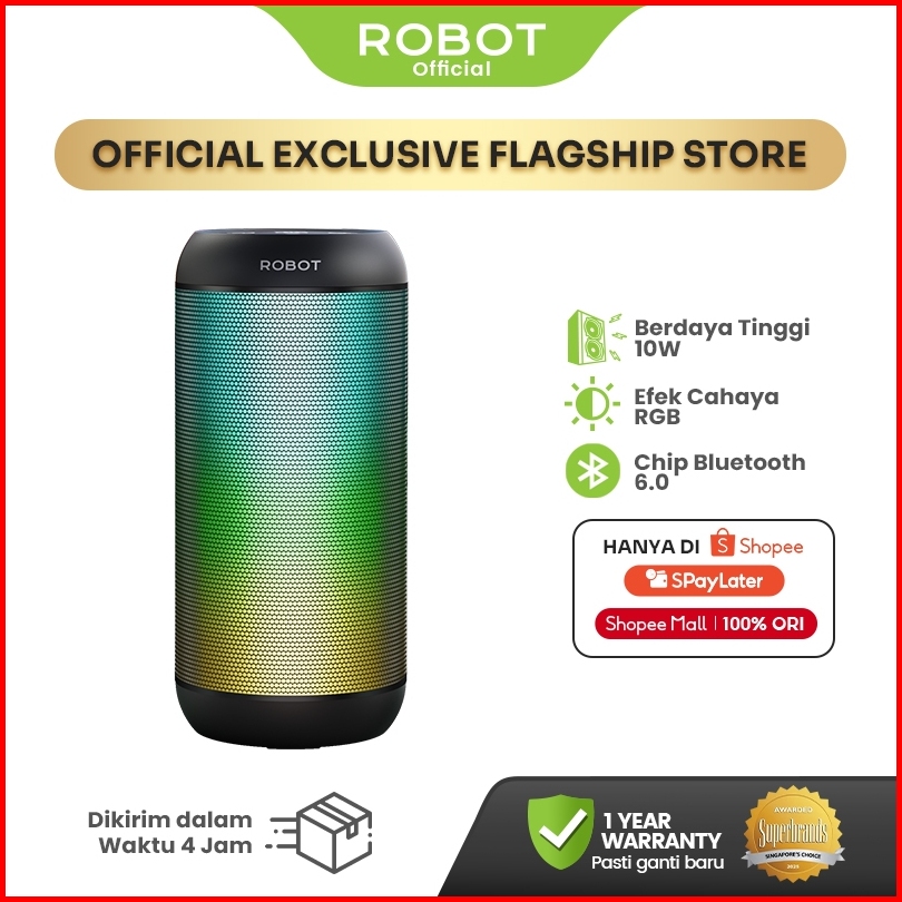 Robot Speaker Bluetooth Superbass 10w Ipx4 With Rgb Light Speaker Wireless Waterproof Rb510 Original - Garansi 1 Tahun