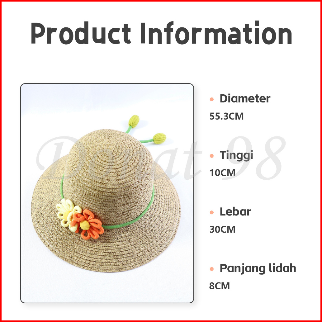 Topi Jerami Anak Bunga Matahari Lucu Flowly Beach Hat Kids
