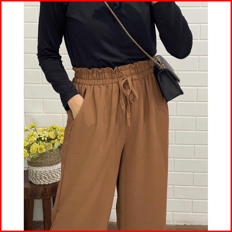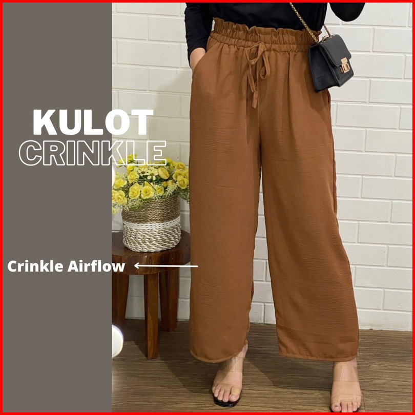 Kulot Crinkle Tali Premium Jumbo Xxl Muat Bb 90 Celana Kulot Crinkle Airflow Celana Wanita Highwaist Variasi Tali Serut