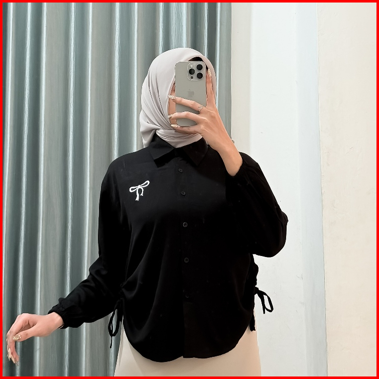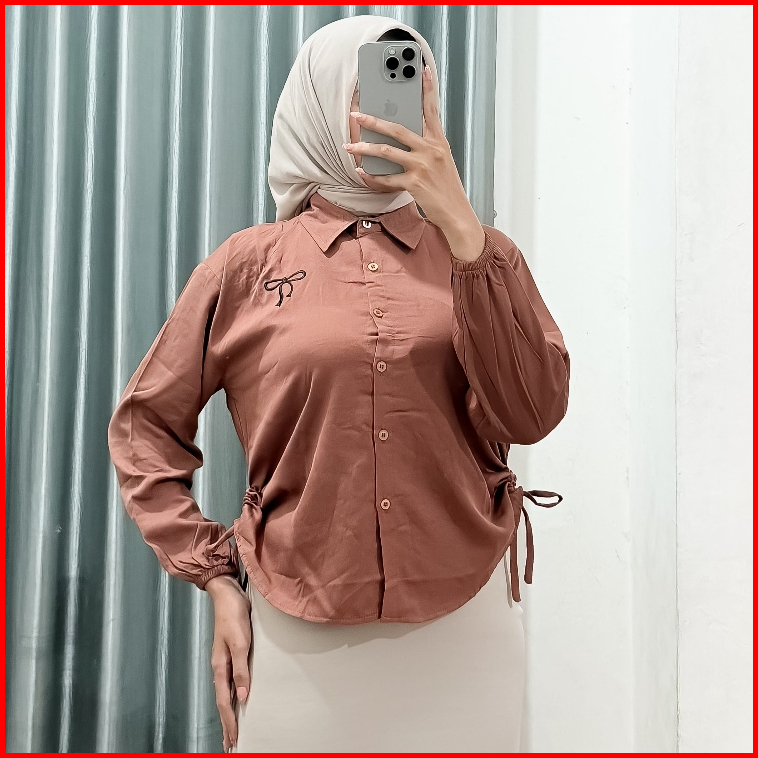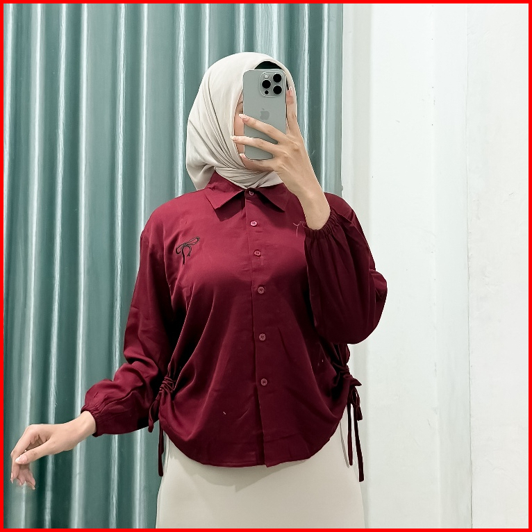 Kemeja Wanita Bordil Pita Serut Samping Kemeja Wanita Kekinian Kemeja Korean Style Remaja