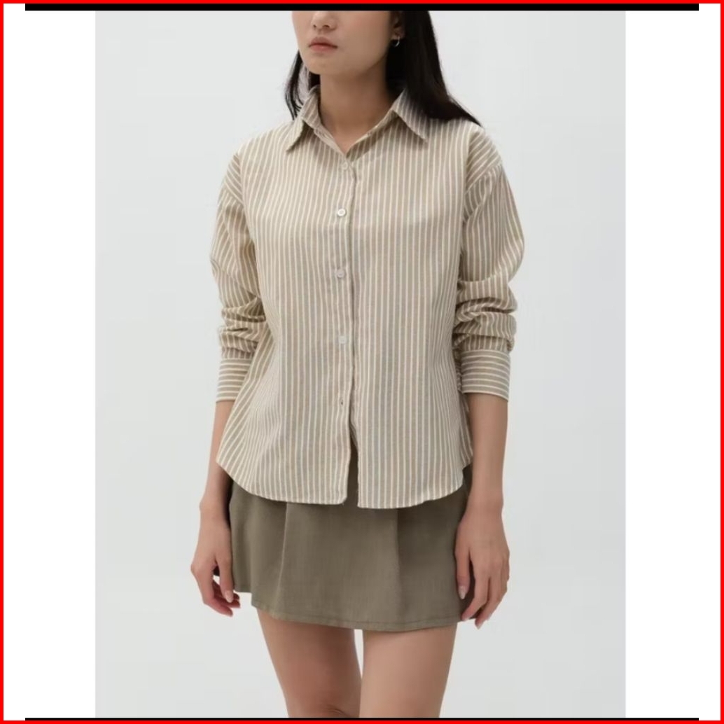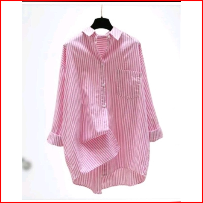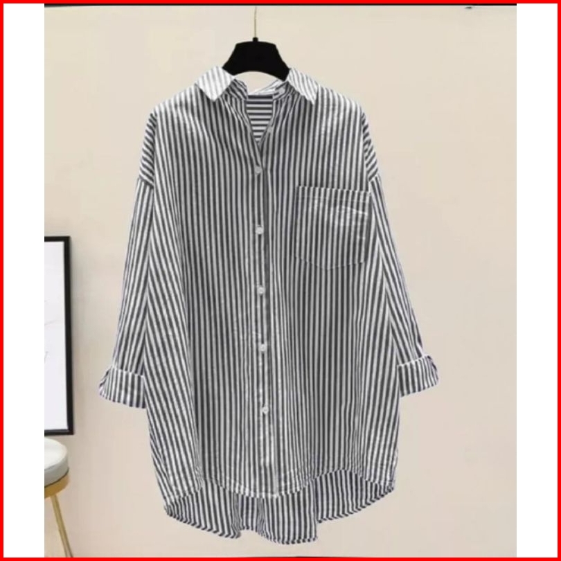 Kemeja Salur Baju Atasan Wanita Katun Adem S-xxl