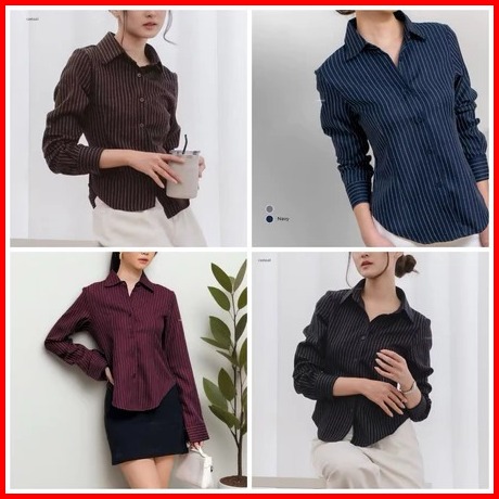 Kemeja Fitted Wanita Atasan Fitted Stripe Lengan Panjang Kemeja Wispei Wanita Slimfit Terlaris